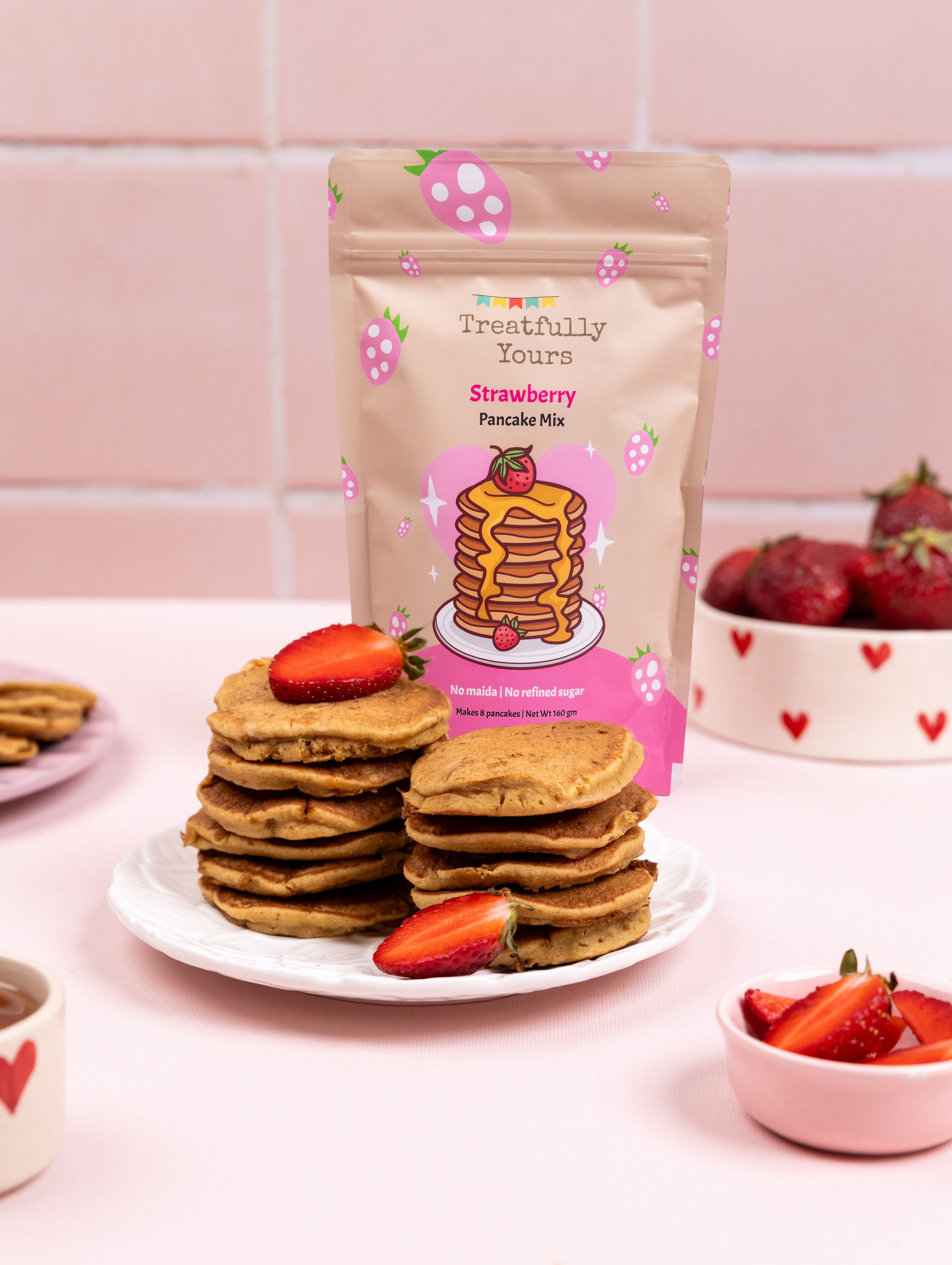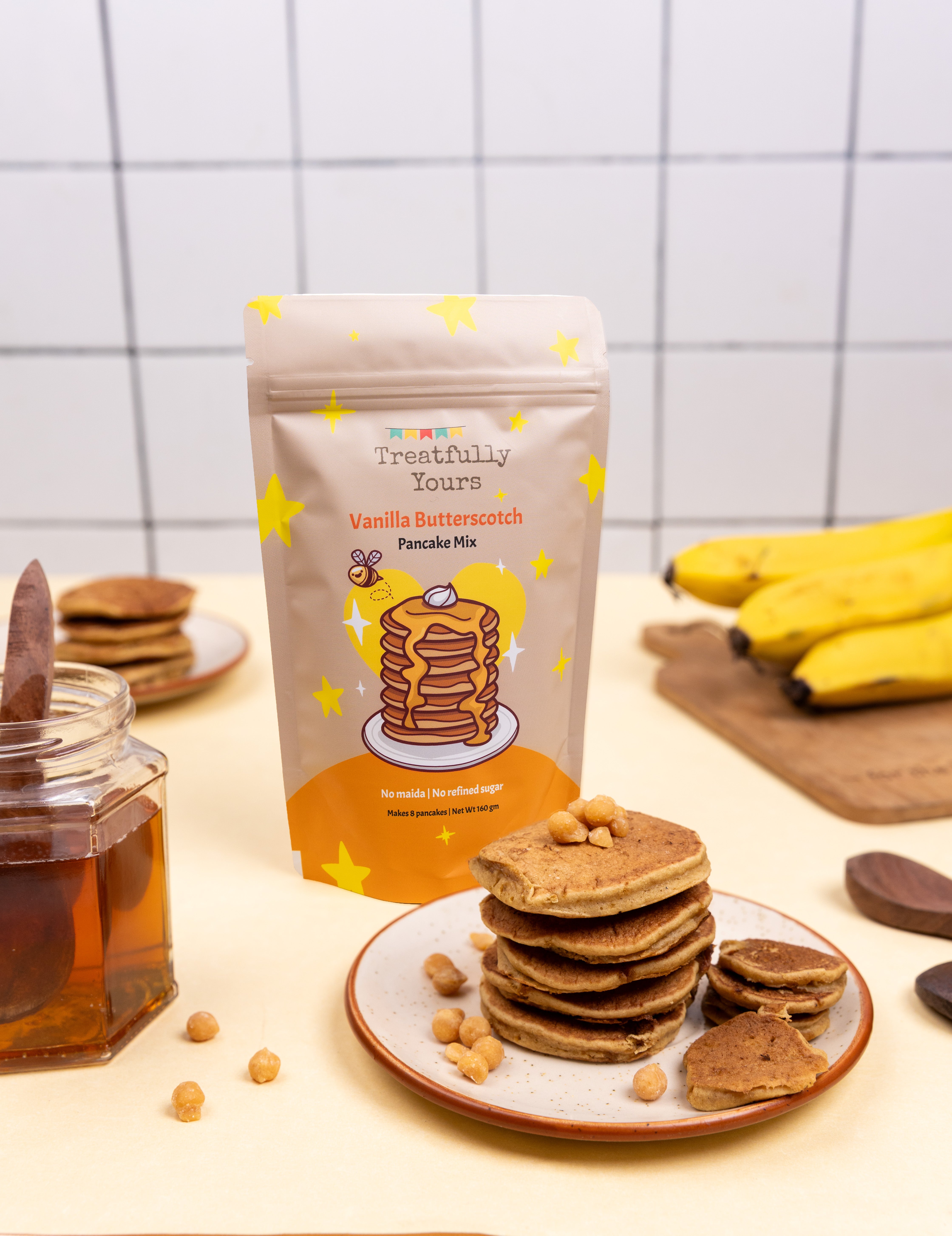 Carolyn is a Voice Over Artist by profession, and a mum of 2. The idea for Treatfully Yours came to her in a dream, which she decided she must act upon. The initial response to the very first mix was so overwhelming, it made her realize she had a winner on her hands. She has spent the last few years developing and growing the brand, thereby adding to the list of happy kids and their parents who vouch for the taste and ease with which the pancakes come together.