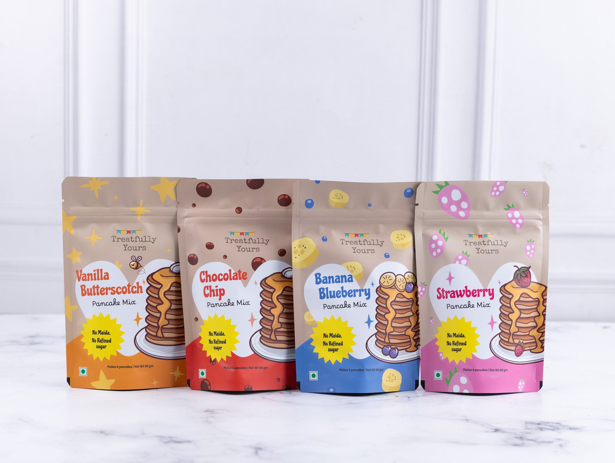 Carolyn is a Voice Over Artist by profession, and a mum of 2. The idea for Treatfully Yours came to her in a dream, which she decided she must act upon. The initial response to the very first mix was so overwhelming, it made her realize she had a winner on her hands. She has spent the last few years developing and growing the brand, thereby adding to the list of happy kids and their parents who vouch for the taste and ease with which the pancakes come together.